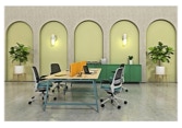 Combining solid wood material onto powder coated metal leg frame supporting “natural and homey” ambience to your office workspace.